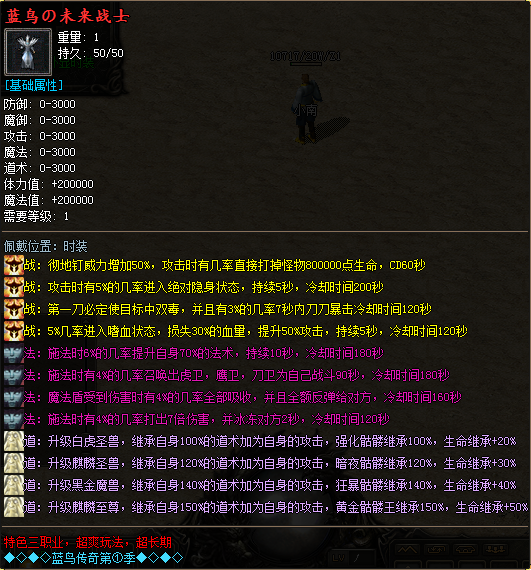 为了防止盗版,只展示了一部分装备,蓝鸟大陆会长期不断更新,和玩家一起养老!