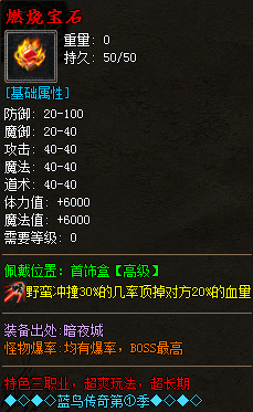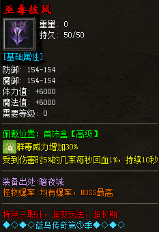 本服每个地图都有一套BOSS装备,2件高级BOSS手戒,首饰盒BUFF神器,高级BOSS手戒单件触发套装属性,